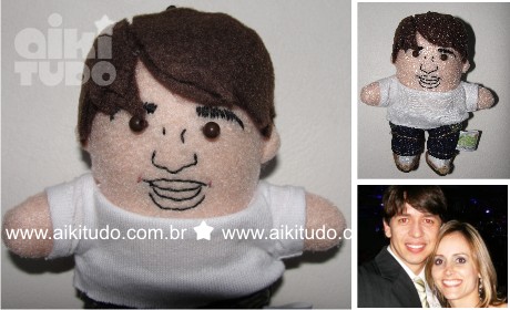 Essa foi uma encomenda da Letícia, para presentear seu namorido. De camiseta branca, com jeans e sapatos super fashion. Ki demais! :)